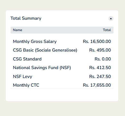 | Total Employer Liability | Approximately up to 20% of the employee’s gross salary, covering CSG contributions, NSF, and other statutory obligations. |